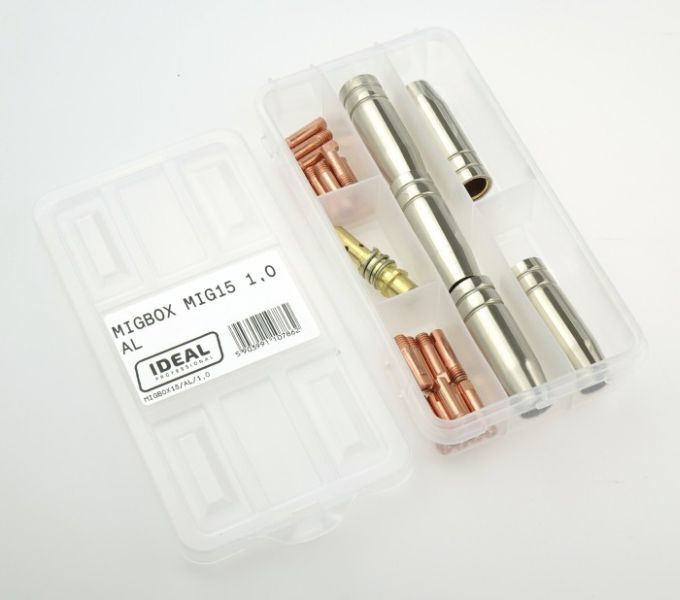 Accesorii si materiale pentru sudare Service parts kit 1mm box intended use: for welding aluminium welding clamp MIG 15 IDEAL MIGBOX15/AL/1.0