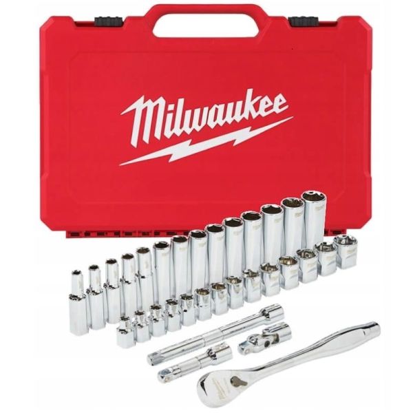 "Set scule Set of tools / Sockets set homogenous 32 pcs profile: Hexagonal socket / drive: 3/8"" packaging: plastic suitcase" MILWAUKEE 4932464945