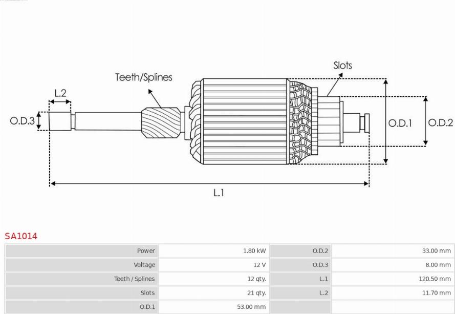 Armatura,demaror FORD TRANSIT V363 (FAD, FBD), Autobuz, 08.2013 - AS-PL SA1014 POTRIVESTE PE URMATOARELE MODELE: AS-PL SA1014 Specificatii tehnice: Tensiune: 12 Numar dinti: 12 Putere electromotor: 1,80 Diametru exter... Read more...