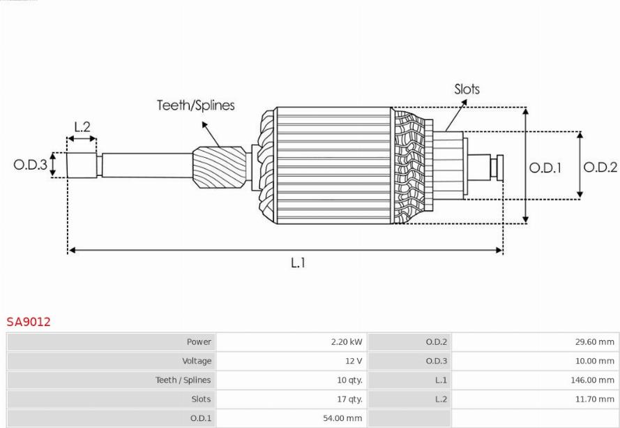 Armatura,demaror FORD TRANSIT V363 (FAD, FBD), Autobuz, 08.2013 - AS-PL SA9012 POTRIVESTE PE URMATOARELE MODELE: AS-PL SA9012 Specificatii tehnice: Tensiune: 12 Numar dinti: 10 Putere electromotor: 2,20 Diametru exter... Read more...