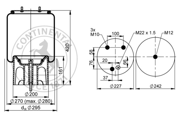 Burduf, suspensie pneumatica Supa de suspensie pneumatica spate R Spate pentru axa ridicata DAF 106 CONTITECH 792NP05