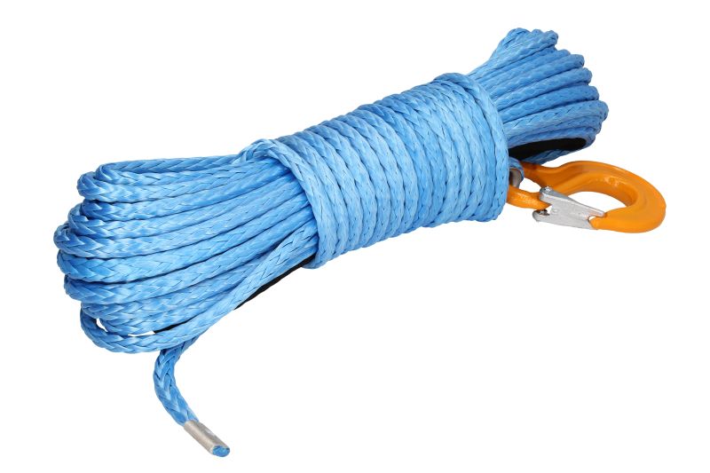 Synthetic rope, length28m, strength:10,5t, diameter:10mm; line type: synthetic; colour: blue; hook, (PL) kausza rurkowa, UHMWPE