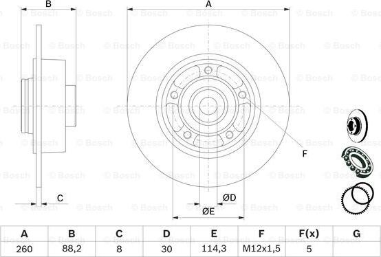 Disc frana Disc de frana cu rulment Spate Dreapta-Stanga cu inel ABS se potriveste. RENAULT CLIO IV GRAND SCENIC III LATITUDE ME RENAULT CLIO IV (BH_), Hatchback, 11.2012 - BOSCH 0 986 479 C88