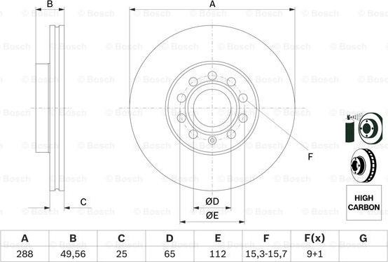 Disc frana VW GOLF V Variant (1K5), Turism, 01.2007 - 07.2009 BOSCH 0 986 479 088 POTRIVESTE PE URMATOARELE MODELE: 1.4 (2007-2009) Petrol 59Kw/80Hp, BUD1.6 (2007-2009) Petrol 75Kw/102Hp, BGU, BSE, BSF, CCSA2.0 (2007-20... Read more...