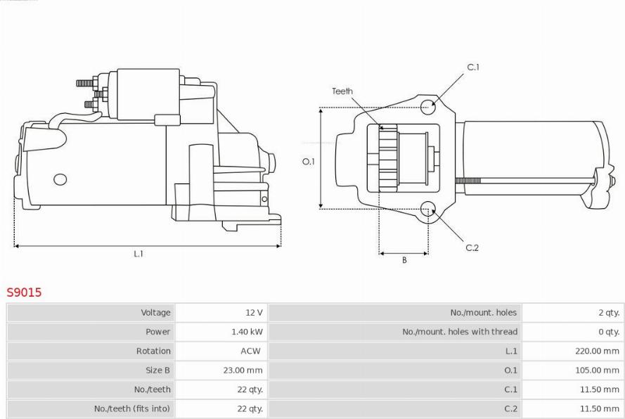 Electromotor FORD MONDEO I (BNP), Turism, 01.1993 - 08.1996 AS-PL S9015 POTRIVESTE PE URMATOARELE MODELE: i 24V 2.5 (1994-1996) Petrol 125Kw/170Hp, SEA Specificatii tehnice: Tensiune: 12 Numar dinti: 22 Putere electrom... Read more...