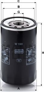 Filtru ulei Oil filter screwed MAN CLA EL EM FOC G90 HOCL L2000 LION S INTERCITY LIONS CITY LIONS CLASSIC M 2000 L M 200 MAN LC (L21), Autobuz Mann-Filter W 1160