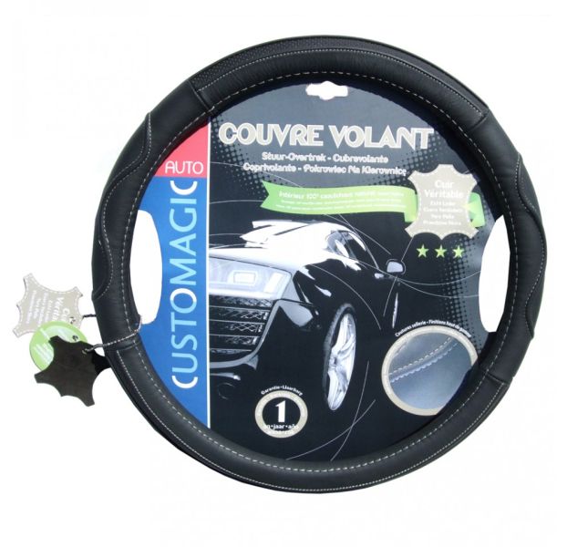Steering wheel cover for steering wheel (Leather, diameter: 36,5-38cm), black , Premium