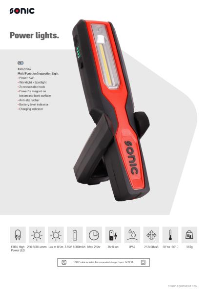 Lanterne portabile Portable LED lamp light source type COB LED light beam 250/500lm power: 5 W Li-Ion SONIC 4820547