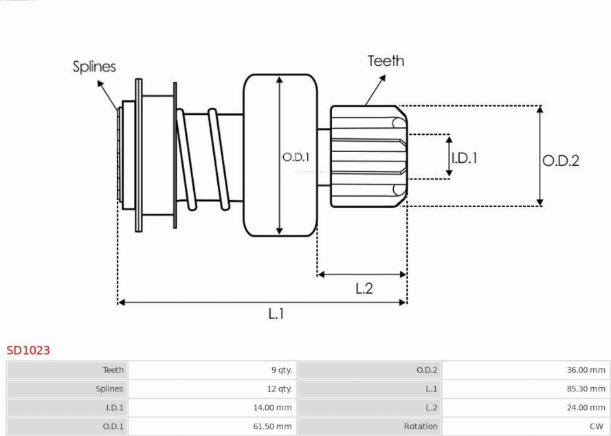 Pinion electromotor OPEL SENATOR A (29_), Sedan, 02.1978 - 08.1987 AS-PL SD1023 POTRIVESTE PE URMATOARELE MODELE: AS-PL SD1023 Specificatii tehnice: Numar dinti: 9 Diametru interior: 14 Directia de rotatie: rotatie con... Read more...