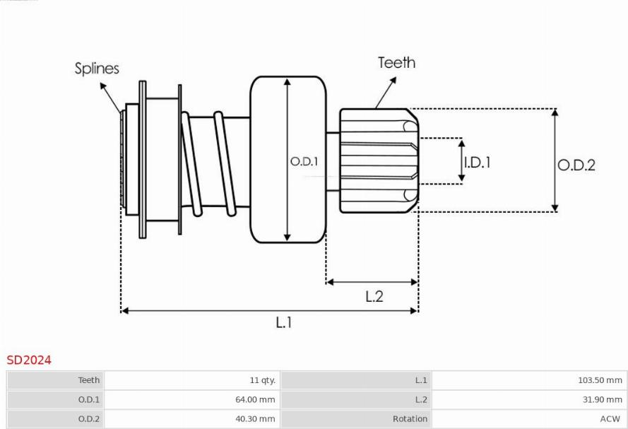 Pinion electromotor OPEL SENATOR A (29_), Sedan, 02.1978 - 08.1987 AS-PL SD2024 POTRIVESTE PE URMATOARELE MODELE: AS-PL SD2024 Specificatii tehnice: Numar dinti: 11 Directia de rotatie: rotatie contrar acelor de ceasorn... Read more...