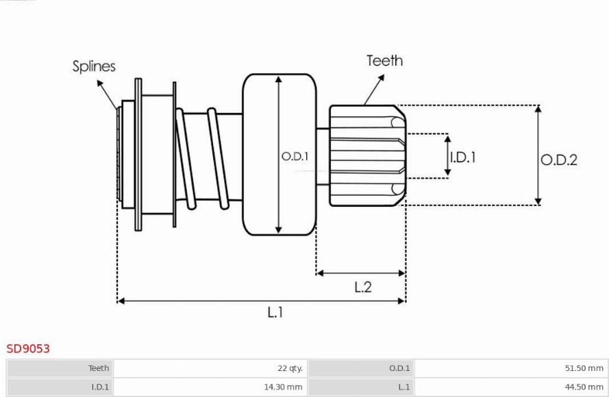 Pinion electromotor MERCEDES-BENZ A-CLASS (W169), Hatchback, 09.2004 - 06.2012 AS-PL SD9053 POTRIVESTE PE URMATOARELE MODELE: AS-PL SD9053 Specificatii tehnice: Numar dinti: 22 Diametru interior: 14,30 Lungime 1: 44.50... Read more...