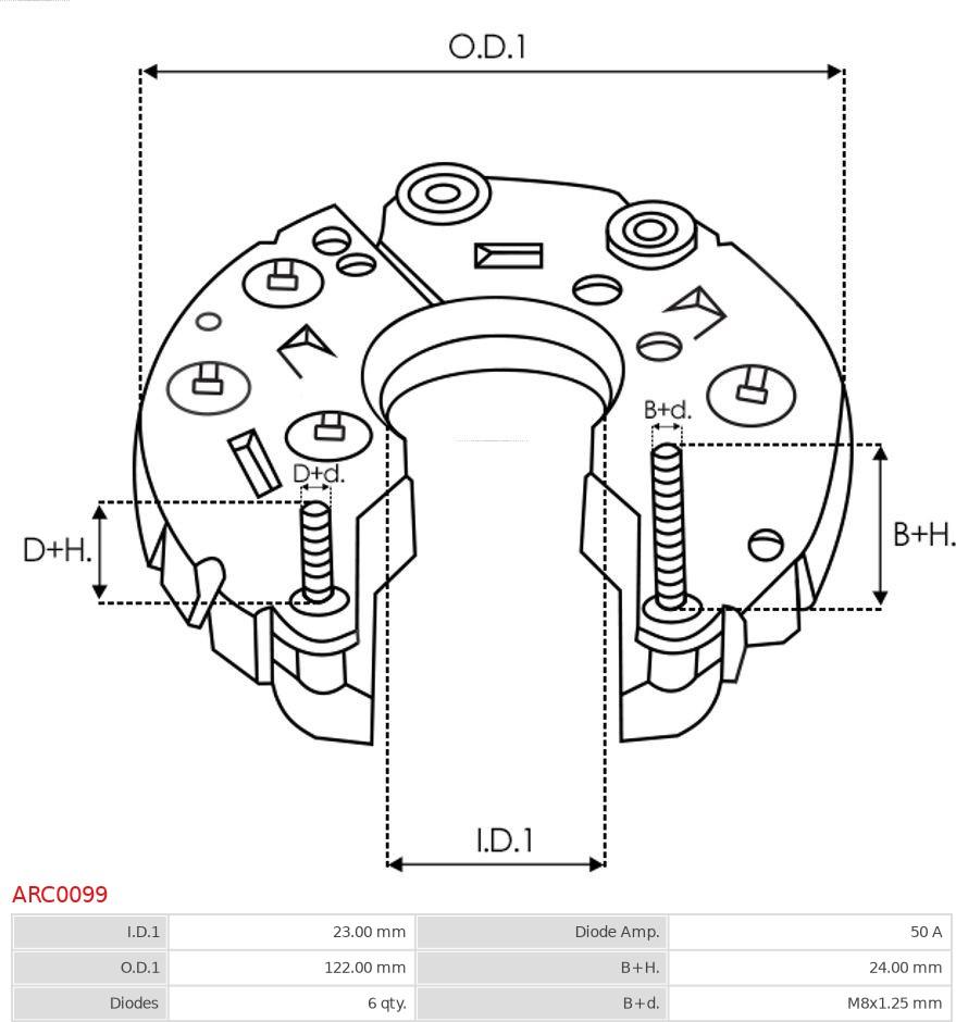 Punte diode SEAT AROSA (6H), Hatchback, 05.1997 - 06.2004 AS-PL ARC0099 POTRIVESTE PE URMATOARELE MODELE: AS-PL ARC0099 Specificatii tehnice: Diametru interior: 23 Diametru exterior: 122 Amperaj: 50 Numarul diodelor:... Read more...