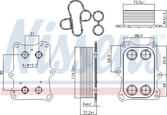 Radiator ulei. ulei motor Oil cooler ABARTH 124 SPIDER 500 - 595 - 695 500C - 595C - 695C GRANDE PUNTO PUNTO PUNTO EVO ALF FIAT BRAVO II (198_), Hatchback, 11.2006 - Nissens 90969