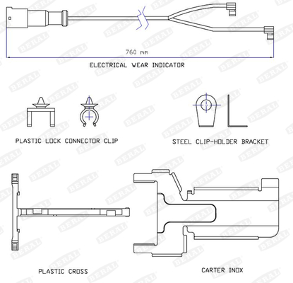 Senzor de avertizare,uzura placute de frana Senzor uzura placute frana lungime: 760mm ST7 WVA 29319 BERAL UAI183