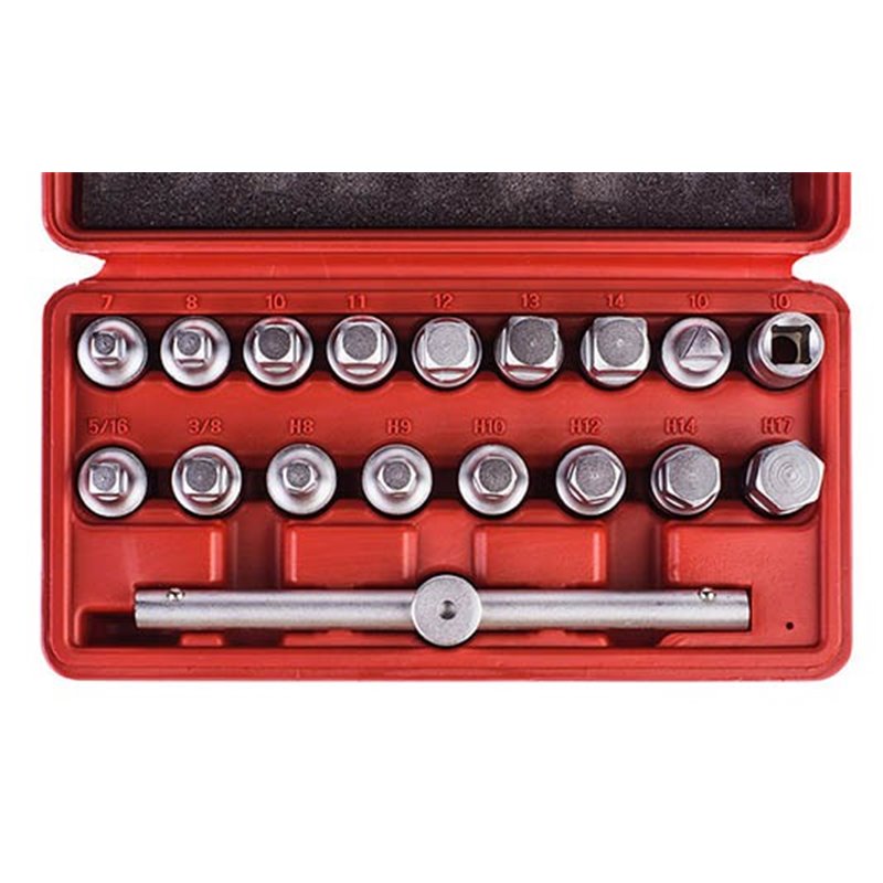 Partea de lucru (profil): Patrat, Triunghiular, Hexagon Partea de antrenare (Profil): Patrat Antrenare [tol]: 3/8 Deschidere cheie: SQ7, SQ8, SQ10, SQ11, SQ12, SQ13, SQ14, SQ5/16, SQ3/8, TR10, H8, H9, H10, H12, H14, H17 Ambalaj: Geanta din material plastic Realizare maner scula: Maner T Numarul sculelor: 18 ROOKS: Set chei tubulare surub golire ulei Numar articol: OK-02.0662 Cod articol producator: OK-02.0662 Producator: ROOKS EAN: 5906190901521