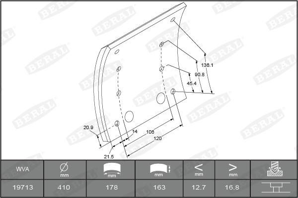 Set garnit de frictiune. frana tambur Ferodou sabot frana 410x163. 1-supradimensionat MAN F90 M90 SD SG SL SL MERCEDES-BENZ NG, 08.1973 - 03.1998 Beral KBL19713.1-1560