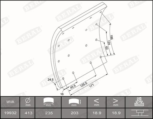 Set garnit de frictiune. frana tambur Ferodou sabot frana 413x203. de baza SCANIA 3 - series (P_LB6X2), Autobuz, 01.1988 - 12.1999 Beral KBL19932.0-1550