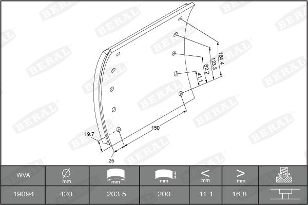 Set garnit de frictiune. frana tambur Ferodou sabot frana 420x200. de baza RVI G MAGNUM MAJOR MANAGER R 10.80- RENAULT TRUCKS G, 10.1982 - 03.1993 Beral KBL19094.0-1560