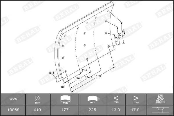 Set garnituri de frictiune, frana tambur Ferodou sabot frana 410x225. de baza BERAL KBL19068.0-1550