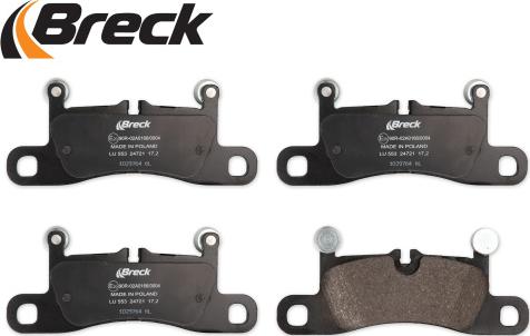 Set placute frana.frana disc Set de frana din ceramica Spate cu greutati de echilibrare cu un tampon de amortizare fara optio PORSCHE 911 (991), Compartiment, 12.2011 - Breck 24721 00 553 00
