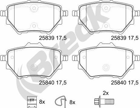 Set placute frana.frana disc Set placute frana Spate CITROEN BERLINGO BERLINGO-MINIVAN C4 GRAND PICASSO II C4 III PEUGEOT 308 SW I (4E_, 4H_), Turism, 09.2007 - 10.2014 Breck 25839 00 704 00