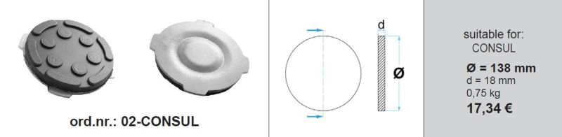 Tampon cric hidraulic Rubber pad {Rubber pad} 138mmx18mm type: circle for lift Manufacturer: CONSUL BOECK 02-CONSUL