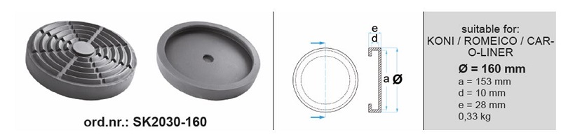 Tampon cric hidraulic Rubber pad {Rubber pad} 160mmx153mmx28mm type: circle for lift Manufacturer: CAR-O-LINER / KONI / ROMEICO BOECK SK2030-160