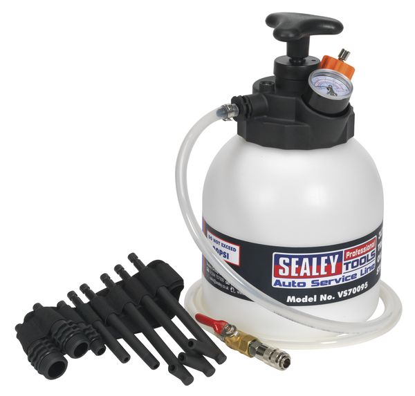 Unelte de manipulare lubricanti SEALEY Zestaw do dystrybucji oleju przekladniowego zasilanie reczne - max. cisnienie 14bar zbiornik 3l z zestawem adapterow do skrzyn biegow. SEALEY SEA VS70095