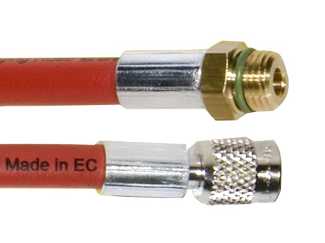 Unelte pentru intretinerea sistemului de A/C Extension hoses to A/C station / to HP R1234yf/R134a hose length LP/HP: 3m 3/8 SAE female M12X1.5 male colour: red ERRECOM ER TB7673R
