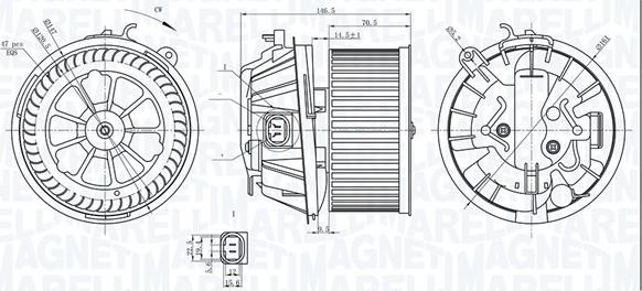 Ventilator. habitaclu Suflanta de aer CITROEN C2 C2 ENTERPRISE C3 I C3 PLURIEL XSARA PICASSO PEUGEOT 1007 206 1.1 CITROEN C3 Pluriel (HB_), Sabrioleta, 05.2003 - Magneti Marelli 069412240010